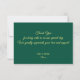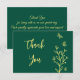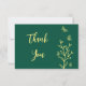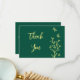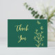 Unique simple wedding thank you card featuring romantic and elegant gold flowers on emerald green background