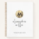 Modern Minimalist Glamourous Gold Metallic Emblem Black Initial Name Girly Script Professional Title Role Custom Text Template Plain White Background Monogram Notebook