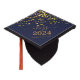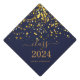 Personalized graduation cap topper featuring a stylish navy blue background that can be changed to any colour, sparkly gold confetti, the graduate's name and year of graduation. Easy to customize.