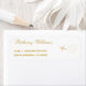 An elegant wedding script font has been used for the name in gold. This is complimented by an easy to read contemporary font for the address.