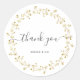 Elegant and simple thank you sticker with gold wreath and handwriting script text.