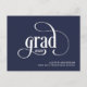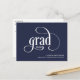 Simple and stylish, this graduation announcement features grad logo text in a modern script typeface with the class year. A text template is included to personalize with your text that includes the graduates class year, name, school and additional information on the reverse side of the card. This versatile announcement card is suitable for any type of school or university graduation and any gender graduate. Shown here in navy blue background, you can customize the background colour to the colour of your choice.