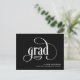 A simple and stylish graduation announcement featuring grad logo text in a modern script typeface with the class year. A text template is included to personalize with your text that includes the graduates class year, name, school and additional information on the reverse side of the card. This versatile announcement card is suitable for any type of school or university graduation and any gender graduate.