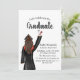 Let's celebrate the graduate. Simple minimalistic grad party invitation featuring a graduate in black cap and gown holding a diploma. Cute invitation for female senior grads throwing a grad party. Perfect for high school and college students graduating this year. The text can be changed.