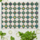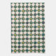 A simple pattern of green checks and mushrooms. Hand drawn.