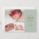Share your happy news with this multi-photo birth announcement. The new baby card features three photos on the left arranged in a collage. On the right, add your newborn's name, birth details, and your names in modern charcoal grey lettering against a soft sage green background. The back of the birth announcement is blank and can accommodate additional photos and/or a personal message.