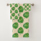 Simple Green Monstera Leaf Pattern on Light Beige Bath Towel Set