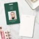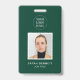 This simple green vertical employee ID card features modern typography and simple design. Personalize it with your photo, logo, name, job title, and custom text.