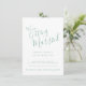 Modern simple muted green and white wedding invitations. Green script text on white front and a plain green back. Other matching wedding items and colours available. © Original design by www.mylittleedenweddings.com