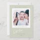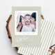 Simple and elegant white and green stripe photo holiday card features a modern minimalist design with stylish hand lettering script and a front white framed photo. The back is a trendy preppy green and white striped pattern. Customize with your holiday family portrait, and personalize with your custom name and year.