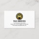 Cover features a white and a green coloured layer design with a gold taxi speech bubble logo you can use. The business name "TAXI" (which you can change) blends in with the green layer. Just below this is the contact details with your prestigious name near the base of the card.