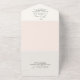 Enjoy a minimalist watercolor greenery & eucalyptus illustration over a soft pink background combined with an elegant calligraphy typography. This all-in-one sustainable invitation would save you money, no need to include RSVP envelopes, your guests will tear away the last panel and mail it back to you as a postcard.