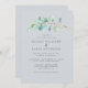 Chic, modern and simple wedding invitation with elegant classic typography and a stylish touch of eucalyptus foliage greenery on a pastel blue background. Exclusively designed for you by Happy Dolphin Studio. If you need any help or matching products, please contact us at happydolphinstudio@outlook.com.