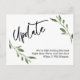The front features a graphic header I designed using a modern, casual handwriting font, that reads "Update". Lower, there is a cheerful message you can edit, which declares your news: "We're Still Getting Married! Right Now We're Just Not Sure When it Will Happen." Accented with two watercolor sprigs of greenery, all layers were added separately and left unlocked to give you maximum design control. Use the template fields to add your personal details and change any of my draught wording to suit your needs and situation.