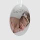 Avez-vous eu un bébé cette année ? Ajoutez un souvenir à votre arbre avec cet ornement acrylique pour le premier Noël du bébé. Un design moderne et simple avec le message "Notre petite bénédiction de Noël" dans une police d'écriture grise élégante sur votre photo préférée sur le devant. L'arrière a des natures de bébé entourées de taches de neige, sur un arrière - plan gris assorti. Un design neutre pour le genre qui est idéal pour un garçon ou une fille. Cette décoration de faire-part de naissance de vacances fait également un grand cadeau pour les amis proches et la famille.