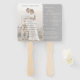 Modern wedding program hand fan featuring a simple design with a combination of a contemporary sans serif font, an elegant handwriting script and an italic font.