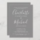 Featuring signature style names, this simple, elegant, modern engagement party invitation can be personalized with your special event details in chic white lettering on a grey background. Designed by Thisisnotme©