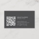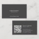 The elegant, simple, and minimalistic immigration attorney business card design features customizable white typography on a dark grey background. QR Code.