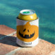Simple Halloween jack-o-lantern pumpkin face Name Can Cooler
