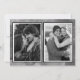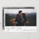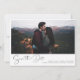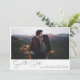 Fresh and Modern, this is a Simple Black and White Hand Lettered Script Typography Photo Save the Date Wedding Invitaiton with a white frame. The front of the card features your engagement photo at the top, with "Save the Date" in an ultra-modern, hand lettered script typography on the bottom left. The wedding date, location and bride and groom names appear below, in a fresh, modern sans serif font that creates a very clean look. The back of the card features a very popular black and white watercolor design, and two of your favourite vertical orientation engagement photos, with black and white filters applied. Copyright Anastasia Designs, all rights reserved.