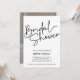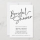Minimalist PHOTO bridal shower invitations featuring "Bridal Shower" at the top left, presented in a black calligraphy script against a classic white background with space, on the reverse side, for a portrait or vertical photo. Customize the chic bridal shower invitations with the name of the bride-to-be and shower party details below. The contemporary bridal shower background can be changed in any colour!. Vertical version