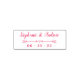 Easily personalize these custom Simple Heart & Arrows Names Script Wedding Date self-inking rubber stamps with your own names and address. To customize these rubber stamps, click on "Personalize this template" and change the text in the boxes provided. Available in 9 different colours and 6 sizes. Please view your design on the monitor as close to actual size as possible to ensure that the text prints at the expected size. These return address self-inking rubber stamps stamp up to 10000 impressions with each cartridge, have a soft touch for secure grip and ink-free fingers and an eco-friendly manufacturing process. No minimum order quantity.