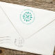 This design features a Christmas holiday return address simple self inking stamp with stylish trendy elegant circle text design and a simple minimalist minimal creative,winter snowflake design elegance font, a Christmas holiday mailing accessories,floral flower leaves leaf design,simplistic elegance classic family name,traditional elegant emblem motif, a Christmas holiday name address custom, a Christmas holiday greeting card stamping