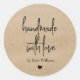 Rustic Kraft Label in a modern script design with elegant calligraphy font, space for baking tag line "homemade with love by baker's name with kraft paper background. Use these homemade with love stickers for your homemade baking business, holiday baking, holiday cookies exchange or holiday treat labels.