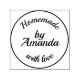 A simple, but unique customizable rubber stamp "Homemade by xxx with love"