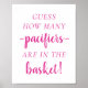 Counting Game Table Signage: Simple "Guess how many" (pacifiers, candies, socks, etc) baby shower or gender reveal party table sign featuring a fun, casual hand-lettered script. The classic design includes a modern handlettered quote typography overlay. For other colours or matching products, please visit the JustFharryn Zazzle store, or contact the designer, c/o Fharryn@yahoo.com All rights reserved. #bohochic #zazzlemade