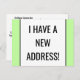 This minimalist change-of-address postcard design features the message "I HAVE A NEW ADDRESS!" on the front, and a customizable message on the back. Postcards like this could be used to inform friends and relatives of a new address, a new phone number, and other relevant information.