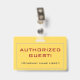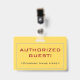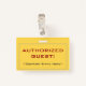 Cette conception de badge simple comporte le message "AUTHORIZED GUEST!", ainsi qu'un nom de société personnalisable ou un autre message personnalisé. Il dispose également d'une frontière à deux lignes. Un badge comme celui-ci pourrait être utilisé pour indiquer que quelqu'un dans un lieu de travail ou une entreprise est un invité/visiteur autorisé. [~Z0000307]