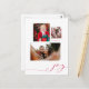 This customizable holiday photo postcard features three photos accented by the word joy in red. The back is setup as a postcard for easy mailing.