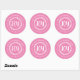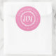Affordable custom printed round return address stickers personalized with your family name and return address. This rustic modern holiday design features simple JOY lettering and branches on a pink background. Use the design tools to change the background colour and fonts to further customize your own unique Christmas return address labels.