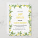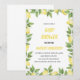Lemon theme baby shower invitation featuring watercolor illustrations of lemons, lemon blossoms and Mediterranean tile pattern. Personalize by adding names, date, time and other details.