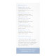 Elegant rack card featuring a simple and modern design with text in a light powder blue / dusty blue colour over a white background. The back has your price list / service menu. This design is perfect for a day spa but can be modifed for any type of business.