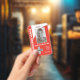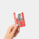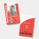 A minimalist and simple design featuring a red and white coloured background, photo, barcode and logo template. Easily customize this badge to your brand. -designed with ❤ by Zaubershirts-