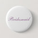 Lilac, script font with white background and Bridesmaid as text. Fun maid of honour button for bridal showers, wedding showers and parties.