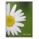 White daisy notebook with greens, a simple little design. Text can be personalized to any message, or name, or text is removable.