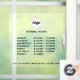 Simple logo branding and custom text opening hours design for your small business. Replace the logo with your own, and change or delete any of the text to customize.