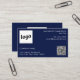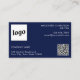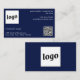 Simple minimalist logo and custom text with QR code on a navy blue background for your business. Replace the logo, QR code and text with your own to customize, and change the background colour to match your own branding.