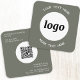 Simple minimalist logo and custom text with QR code on a sage green background for your business. Replace the logo, QR code and text with your own to customize, and change the background colour to match your own branding.