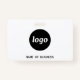 Simple logo with custom text and QR code professional business name badge. Change the logo, QR code website destination and any of the text to customize. The back features your logo and company name.