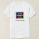 Give your team a polished, professional look with this custom branded business t-shirt. An ideal promotional tool for small businesses, this shirt features a logo prominently placed on the front the shirt, with an optional text area below. Upload your company’s logo, add contact details, a slogan or message, and select a shirt colour that matches your brand identity. This modern template makes it quick and easy to create your own branded t-shirts for staff uniforms or promotional apparel. Click ‘Personalize’ to get started!