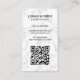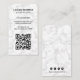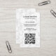 Modern vertical business card featuring a simple and minimalist style with your QR Code on the front and social media icons on the back. All design elements are in black over a grey marble background. A plain and minimal design that can be customized for any business professional.