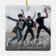 This modern, simple, and chic Christmas ornament features a one-photo template and elegant white calligraphy. It's a unique and personalized gift that's perfect for the holiday season. Customize it with ease to create a memorable keepsake for your loved ones. Ideal for contemporary holiday decor and thoughtful gift-giving.
