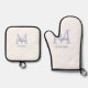 simple minimal add name monogram purple green date oven mitt & pot holder set