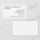 This simple and minimal business card design features a professional’s name, a business name, a job title, and contact info that can be customized. It also has a double-line border with a dashed line in between. Business cards like these might be used by a professional such as a barrister, a lawyer, or a business law expert.