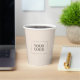 This minimal paper cup features a simple logo and text template. Add your logo and customize the text with your information. You can use this personalized cup at your business place, shops, company event or, etc.