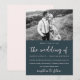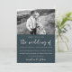 Simple and minimal blush pink and dark blue photo wedding invitation.